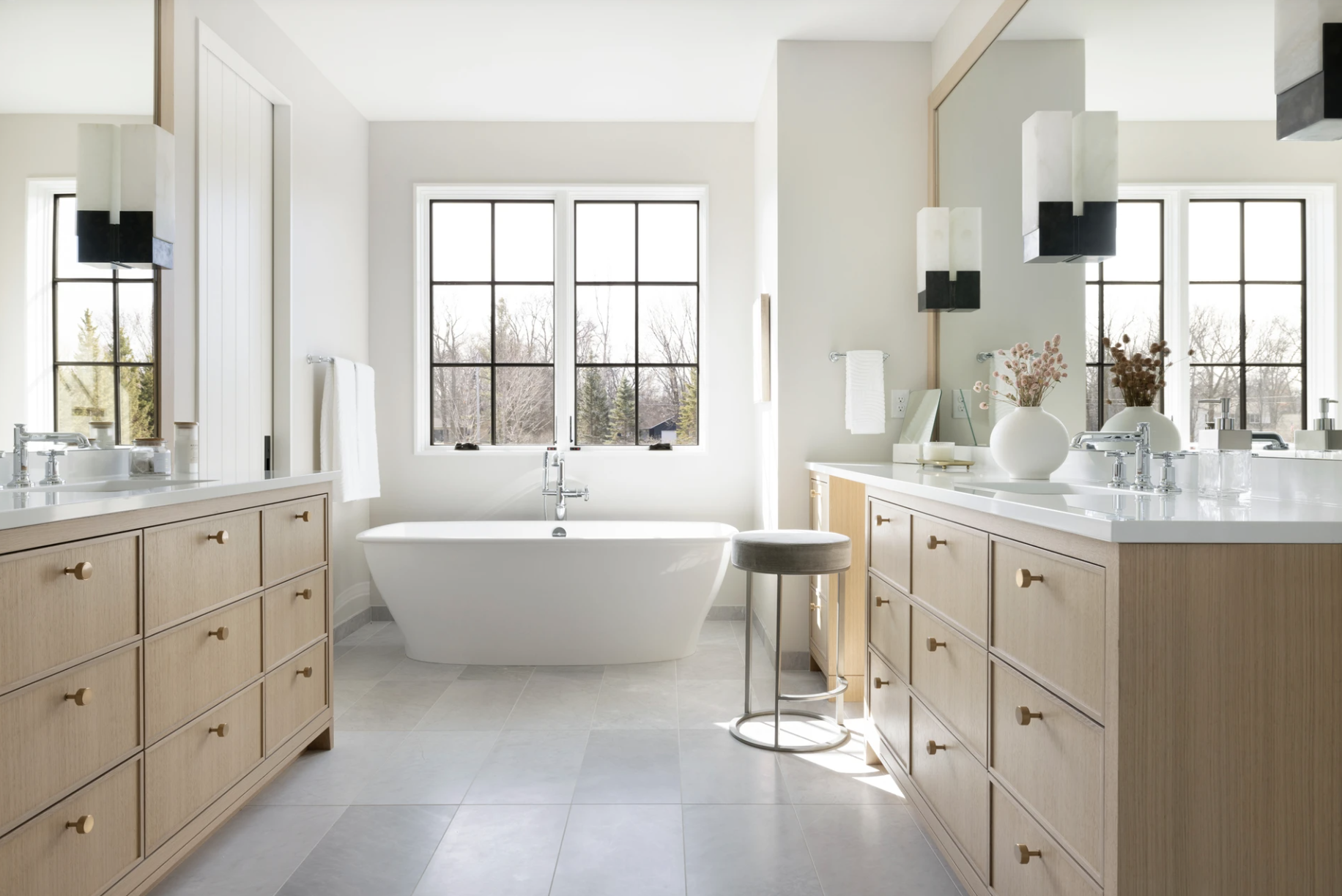 This Modern Tudor home showcases a modern twist on a statelyand timeless style. Walk in to the welcoming space of the foyer graced by high ceilings and take in the view of the open-concept kitchen, dining, and great room creating a seamless flow that makes for a practical, yet spacious main level living. Of the four total bedrooms in this home, two large bedroom suites are located on the main floor. You will also find a laundry room, study, and three season porch. The vaulted primary suite hosts all of the luxury amenities including free standing soaking tub, dual vanities, and a WIC.